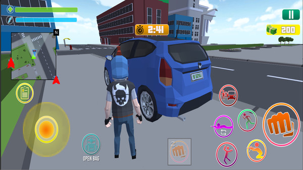 开放世界免费道具沙盒版 为了给玩家提供极致流畅的游戏享受,本游戏构建了一个广阔的沙盒环境。在这里,你可以随意探险,遇到恃强凌弱者可与其战斗,同时还能搜集武器来对抗犯罪分子。所有技能和道具均免费提供,务必时刻关注左上角的小地图标记。